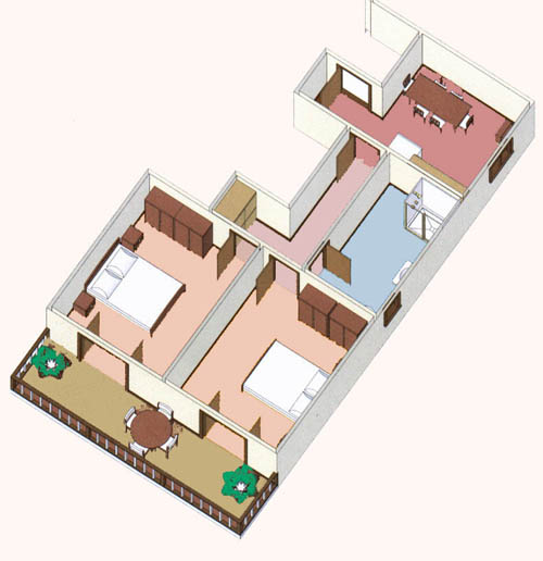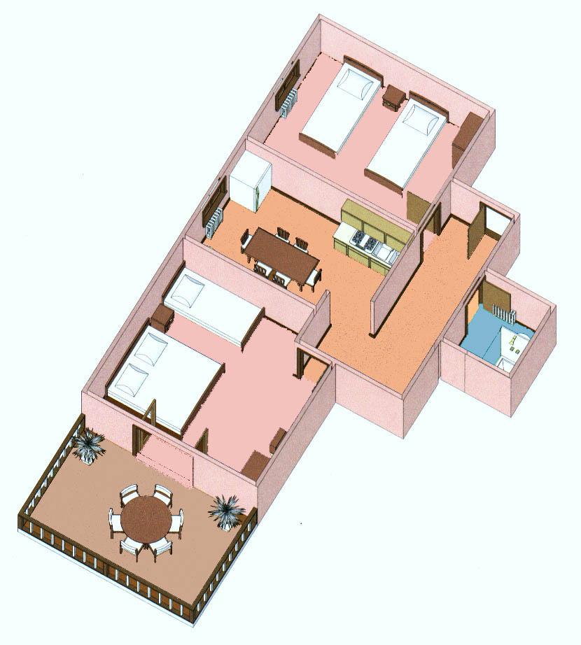 Zweibettzimmer, ein Dreibettzimmer, Küche, Esszimmer,