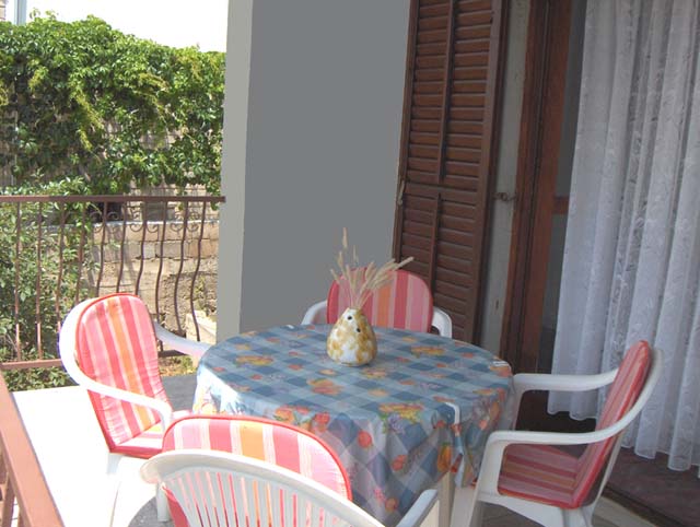 mit Dusche und WC, Balkon mit Tisch und Stuehle,